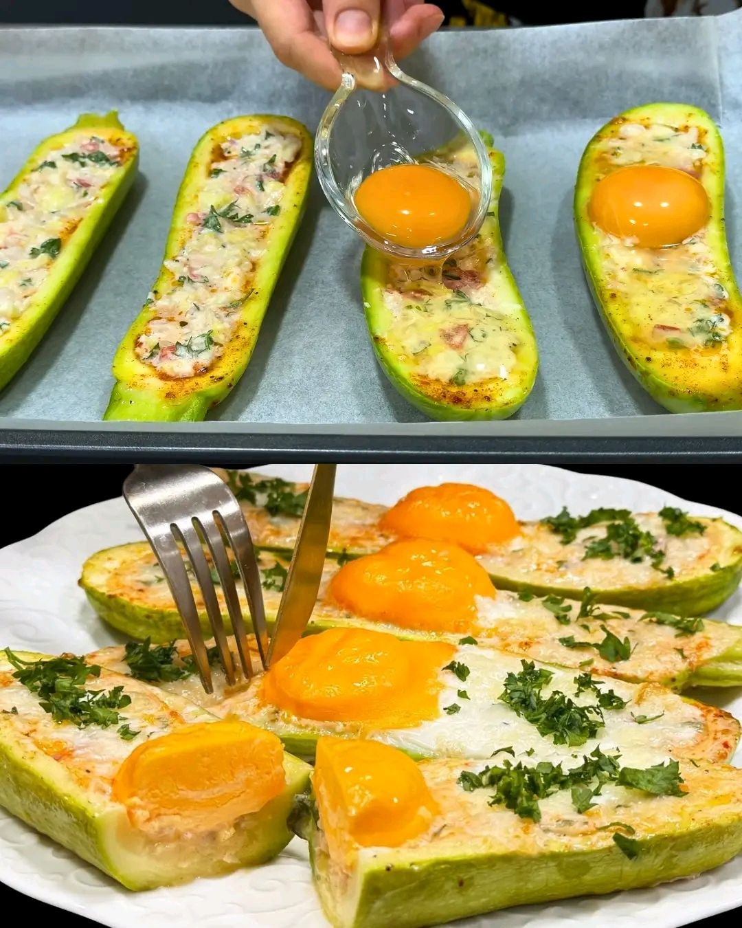 Deze gevulde courgette bootjes zijn een heerlijk en geurig gerecht, boordevol met een hartige vulling van tomaat, knoflook, courgettepulp en kaas, bekroond met een perfect gebakken eitje. Ideaal als lichte avondmaaltijd of als een steviger voorgerecht. Ze zitten vol smaak en zijn verrassend eenvoudig te bereiden. Een leuke en gezonde manier om meer groenten te eten!