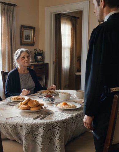 Toen ze de eetkamer binnenkwamen, werd mijn zoon lijkbleek. Het koekje gleed uit zijn hand en spatte uiteen op het smetteloze tafelkleed – als bewijs dat hij vanochtend niet aan tafel zou zitten, maar ik…