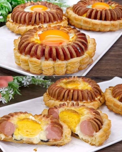 Het ontbijt wordt vaak beschouwd als de belangrijkste maaltijd van de dag. En wat is een betere manier om de ochtend te beginnen dan met een gerecht dat even eenvoudig te maken als heerlijk is? Deze bladerdeeghapjes met worst zijn de ultieme traktatie – knapperige, goudbruine laagjes bladerdeeg omhullen hartige worstjes, gecombineerd met romige mozzarella en de pittige smaak van olijven. Deze kleine hapjes zijn perfect voor een drukke ochtend, een gezellige brunch, als borrelhapje of gewoon als tussendoortje.