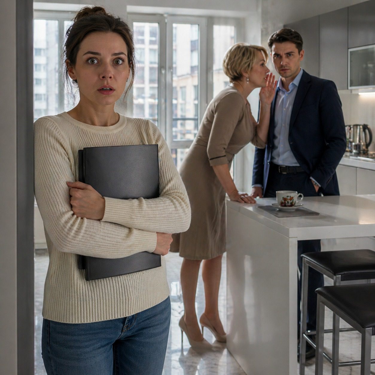 Maar vanuit de keuken klonk het zachte, innemende gefluister van haar schoonmoeder, Alla Borisovna, en het gedempte antwoord van haar man. Oksana verstijfde in de gang en klemde instinctief de map tegen haar borst. Iets in die toon zorgde ervoor dat ze niet naar binnen ging, hen niet riep, maar luisterde.