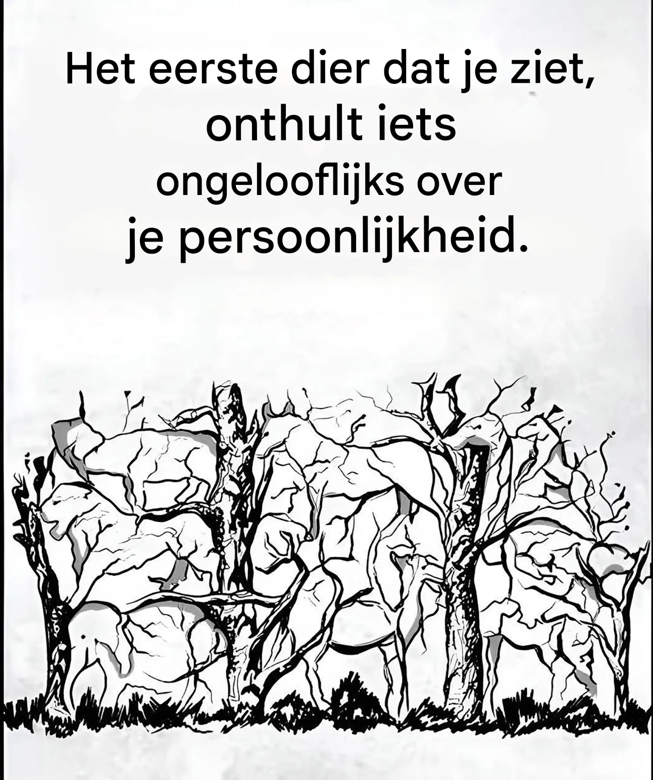 Wanneer we een rijk gedetailleerd beeld zien, selecteert ons brein onmiddellijk wat het meest resoneert met onze gemoedstoestand, onze waarden of ons wereldbeeld. Dit eerste dier dat we zien is geen vaststaand oordeel, maar eerder een symbolische spiegel die bepaalde dominante karaktertrekken weerspiegelt. Zie het als een speelse sleutel tot zelfinzicht, een uitnodiging om jezelf beter te leren kennen… zonder jezelf ooit te serieus te nemen.