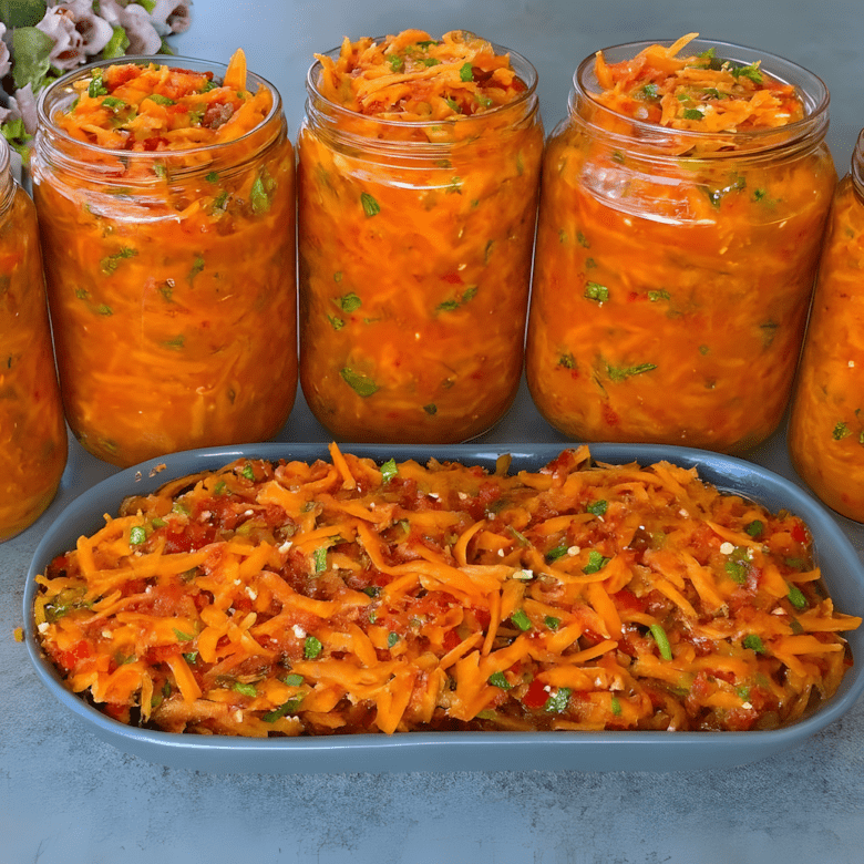 1. Wrijf de wortelen op een grove rasp. Voeg grof zout toe en meng alles goed met je handen tot het sap begint af te geven.
