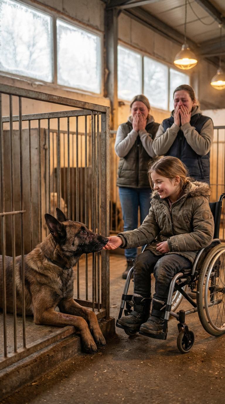 Het meisje in de rolstoel dat een opvanghuis binnenliep — en de gepensioneerde politiehond die door iedereen als ‘te gevaarlijk’ werd bestempeld — deed iets waardoor het hele gebouw stil werd.