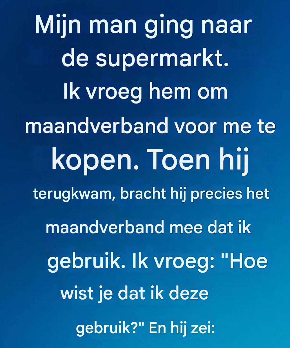 Toen mijn man even snel naar de winkel ging en ik hem vroeg om maandverband te halen, bereidde ik me voor op de gebruikelijke verwarring: berichtjes vanuit het schap, wazige foto’s, misschien een gestrest telefoontje ter bevestiging.