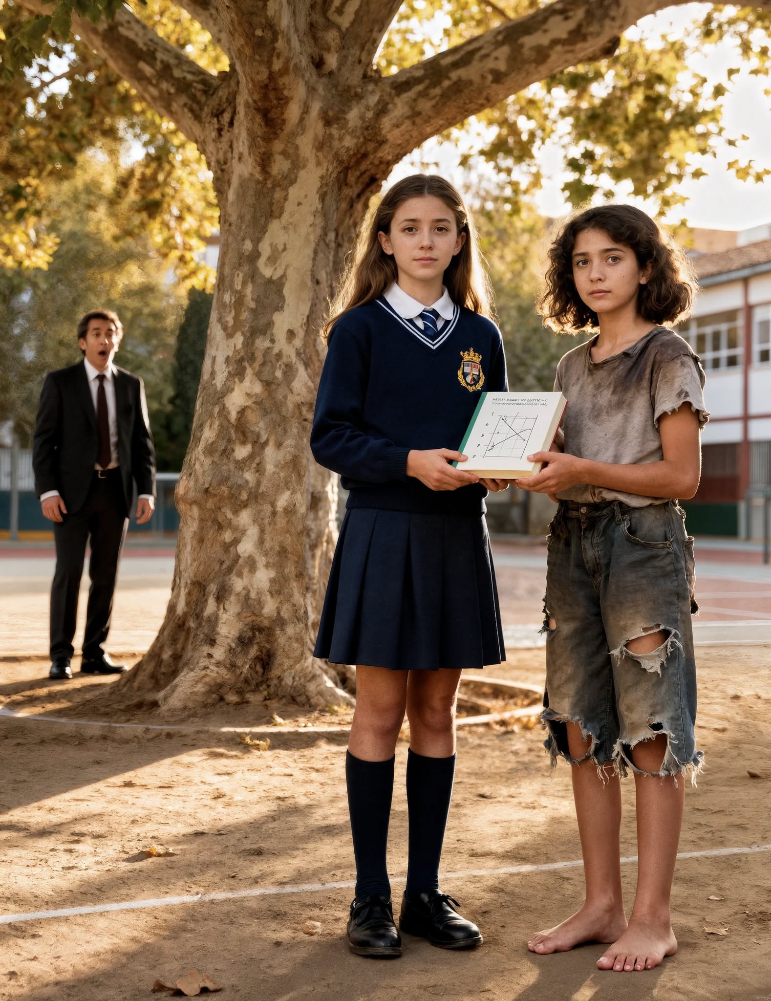 En toch bleef Soledad hopen. Ze keek naar de kinderen, hun schooltassen, hun gepoetste schoenen, en fluisterde tegen zichzelf: « Ooit. Ooit zal ik in een echt klaslokaal zitten. Ooit zal ik deze vervloekte hoek van Madrid verlaten. Ooit zal mijn moeder weer glimlachen en mijn naam kennen. »