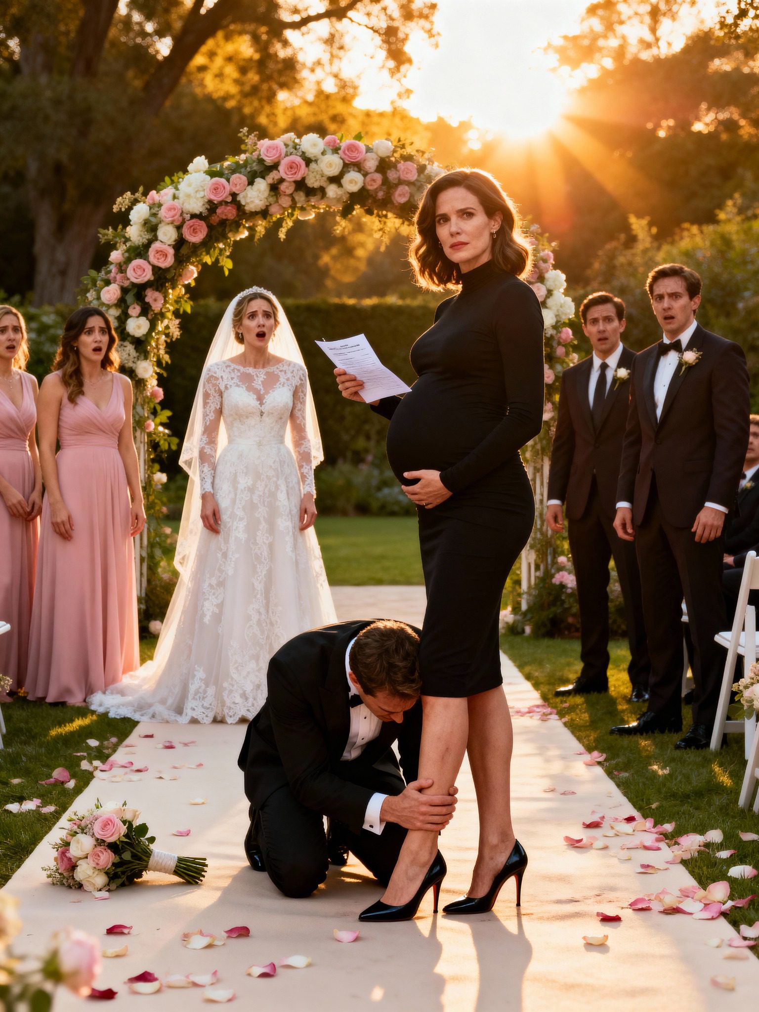 Ik droeg een eenvoudige zwarte zwangerschapsjurk, mijn buik was rond en onmiskenbaar. Mijn haar was opgestoken, mijn gezicht kalm en mijn lippen geverfd met de donkerste rode kleur die ik kon vinden. Ik zag eruit als een weduwe op een begrafenis.