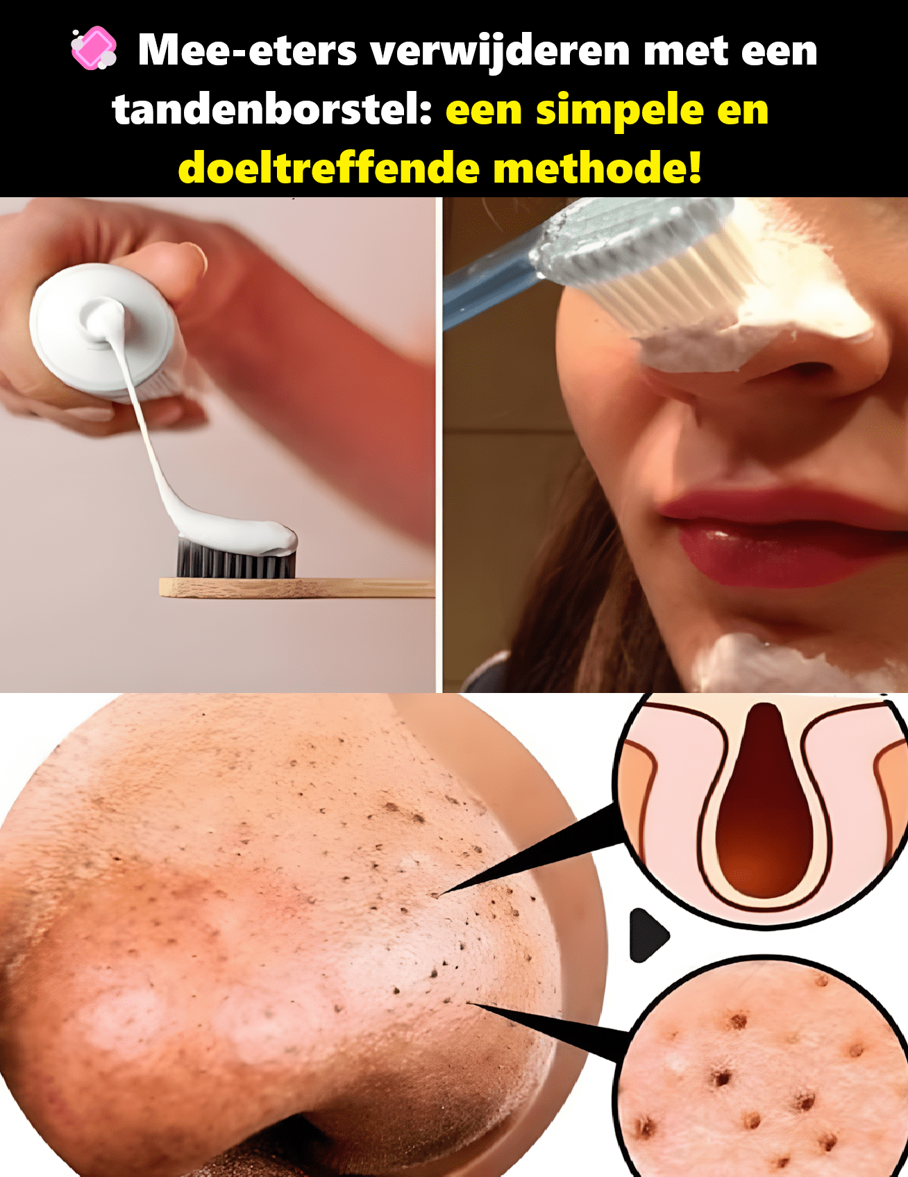 Mee-eters – ook wel zwarte puntjes genoemd – ontstaan door verstopte poriën waarin talg, vuil en dode huidcellen zich ophopen. Gelukkig kun je ze thuis op een zachte en effectieve manier behandelen met iets wat je waarschijnlijk al in je badkamer hebt: een tandenborstel! Hier lees je stap voor stap hoe je het veilig en hygiënisch doet 👇