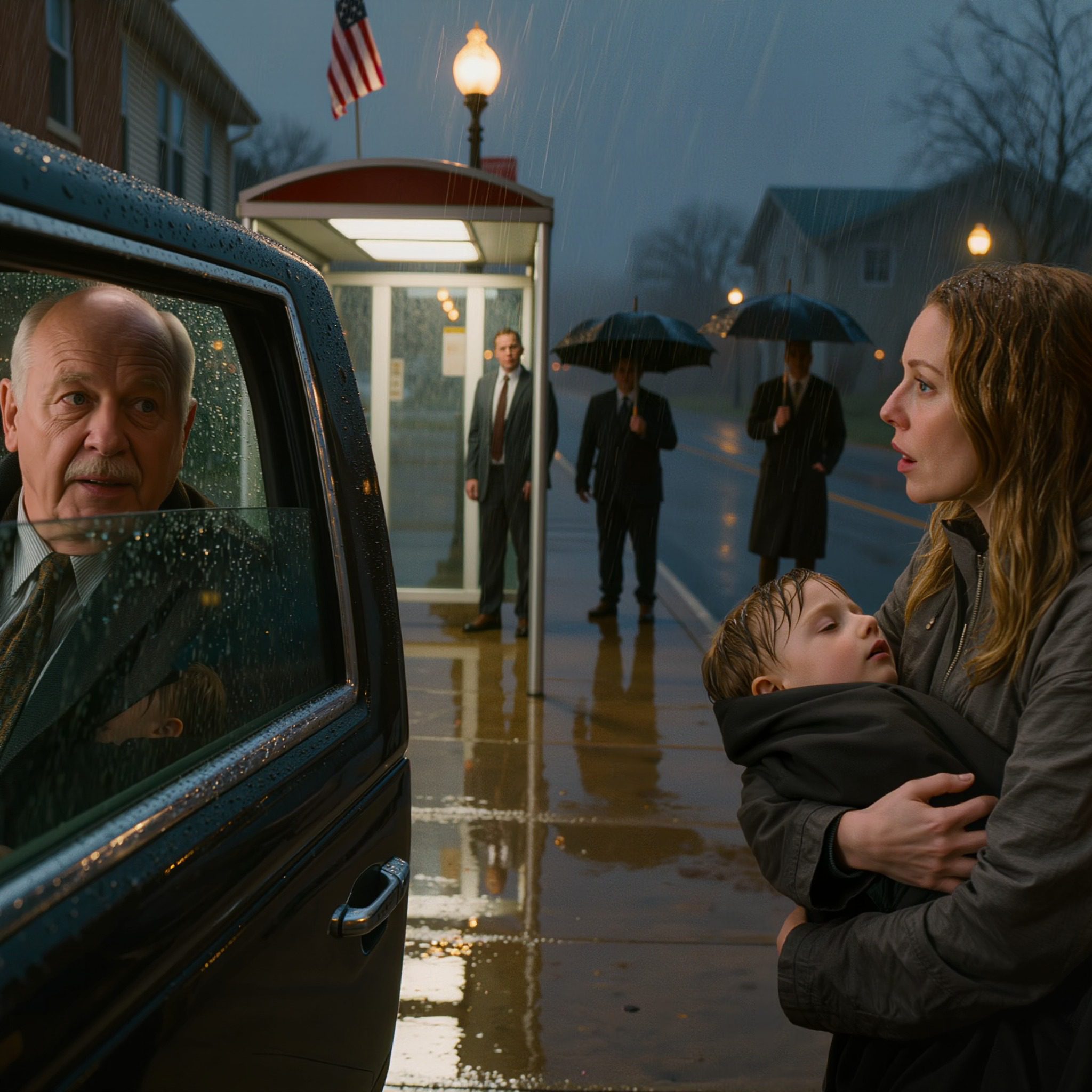 Ik droeg mijn koortsige zoon om 2 uur ‘s nachts naar de bushalte — toen stopte er een zwarte sedan en één vraag veranderde alles.