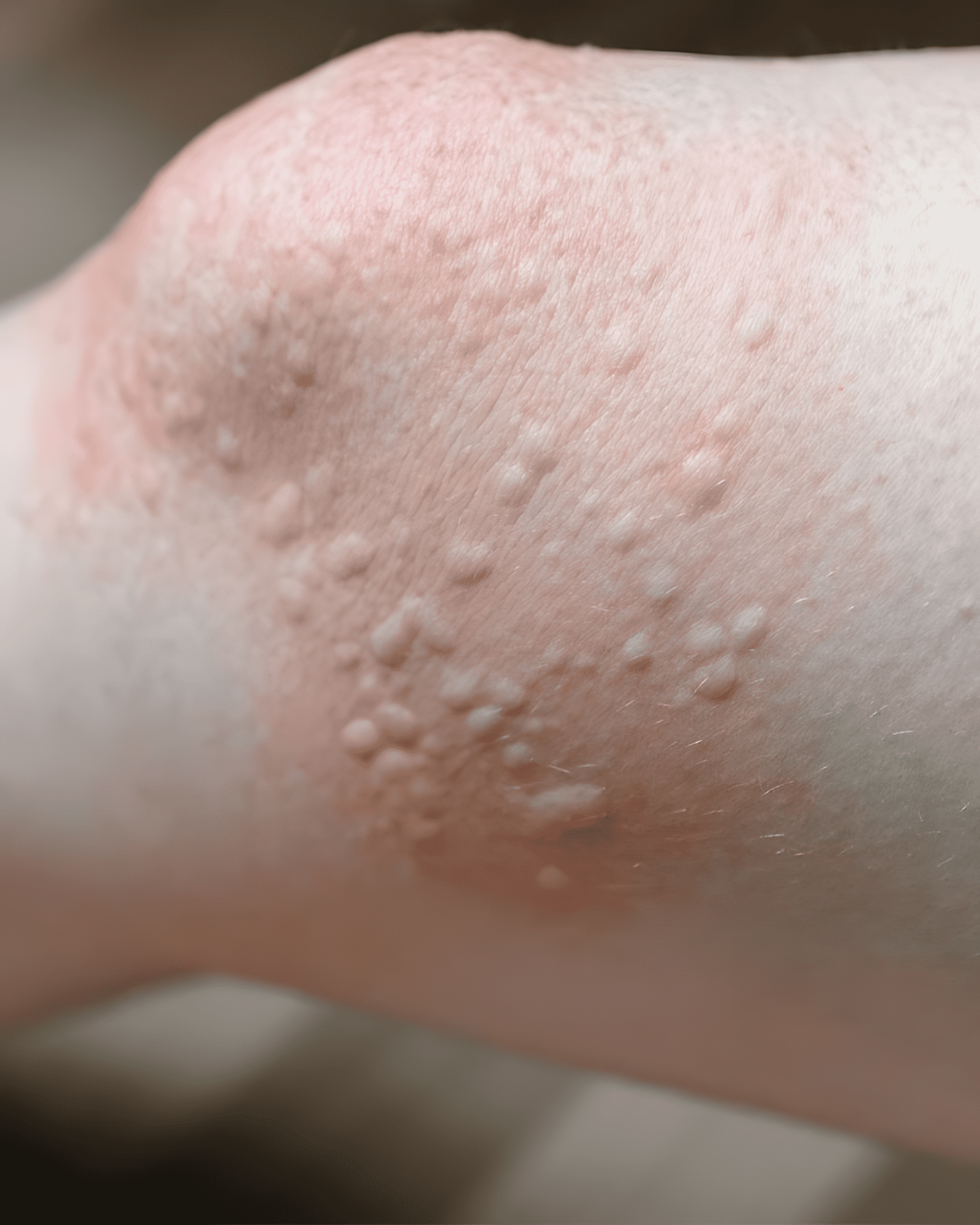 Een andere mogelijkheid is keratosis pilaris, een onschuldige aandoening waarbij dode huidcellen haarzakjes verstoppen, wat resulteert in een ruwe, oneffen huid, vaak op de dijen en armen. Daarnaast kan eczeem of contactdermatitis jeukende, rode bultjes veroorzaken als gevolg van huidirritatie of allergische reacties.