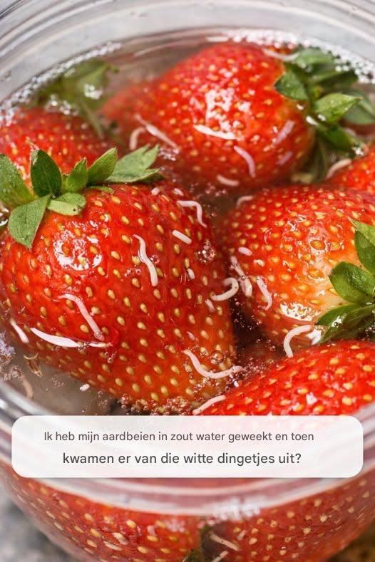 Als je ooit aardbeien in zout water hebt gelegd en kleine witte ‘wormpjes’ eruit hebt zien kruipen, ben je niet de enige. Deze kleine beestjes zijn meestal de larven (maden) van bepaalde fruitvliegen, geen echte wormen. Ze zijn extreem klein – vaak maar 1 tot 3 millimeter lang – en omdat ze licht van kleur en bijna doorzichtig zijn, zijn ze erg moeilijk te zien in de aardbei.