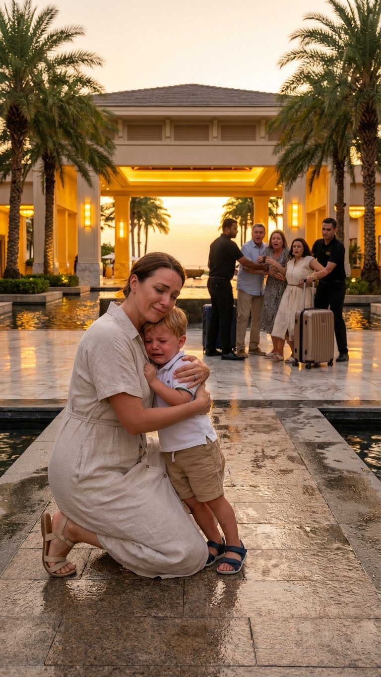 Mark zette zijn borst vooruit en keek de lobby rond alsof hij die zelf had gebouwd. « Mooie plek heb je hier. Zorg dat mijn bagage in de Master Villa staat. En haal snel een dubbele whisky voor mijn vader, puur. Snel. »