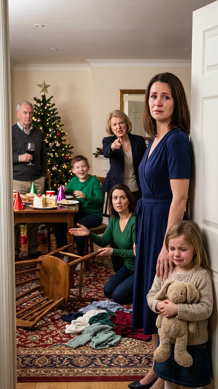 Ik zat aan het uiteinde van de tafel, vlak bij de keukendeur – de tochtige plek. Naast me zat mijn zevenjarige dochter, Mia. Ze zat te pulken aan haar koude gebraden kip, haar kleine schouders gebogen alsof ze zichzelf probeerde te laten verdwijnen.