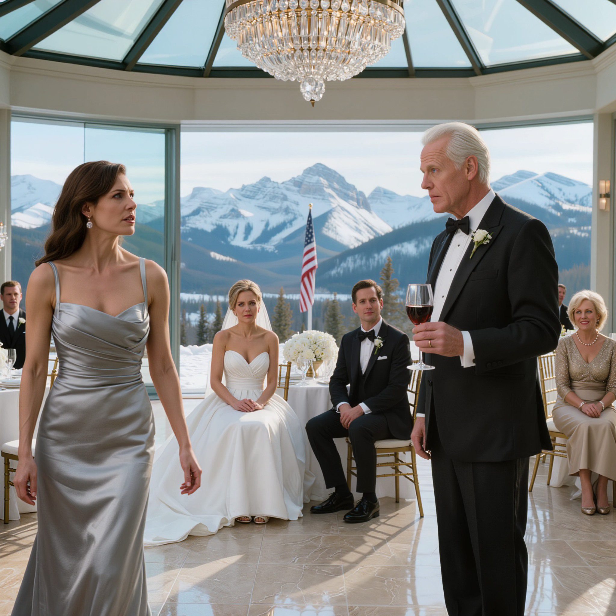 De balzaal glinsterde onder het glazen dak, elke kroonluchter fonkelde met de reflecties van de sneeuw uit de bergen buiten. Gelach zweefde door de lucht, gepolijst en hol, zoals het gelach van mensen die nooit verlies hadden gekend. De jazzband speelde iets luchtigs, bedoeld om de stiltes tussen de loze complimenten te vullen. Ik zat aan de achterste tafel, half verscholen achter kristallen tafelstukken en kaarslicht, en keek hoe mijn zus straalde in haar witte jurk. Rileys glimlach trilde lichtjes, een vleugje nervositeit dat niemand anders opmerkte. Aan de hoofdtafel stond Walter Harrington, vol charme en gezag, zijn glas geheven alsof hij de wereld wilde zegenen. « Op Riley, » zei hij, zijn stem door de zaal snijdend. « Een lieve jonge vrouw die eindelijk een stabiel gezin zal hebben, iets wat ze duidelijk nooit heeft gehad tijdens haar jeugd. » Een golf van ongemakkelijk gelach volgde. Iemand klonk te hard met een glas. Iemand anders schraapte zijn keel. Riley verstijfde, haar hand klemde zich vast aan de rand van het tafelkleed. Ik bewoog niet. Mijn ogen volgden de glinstering van de rode wijn die in zijn glas ronddraaide. Het ving het licht van de kroonluchter op als bloed.
