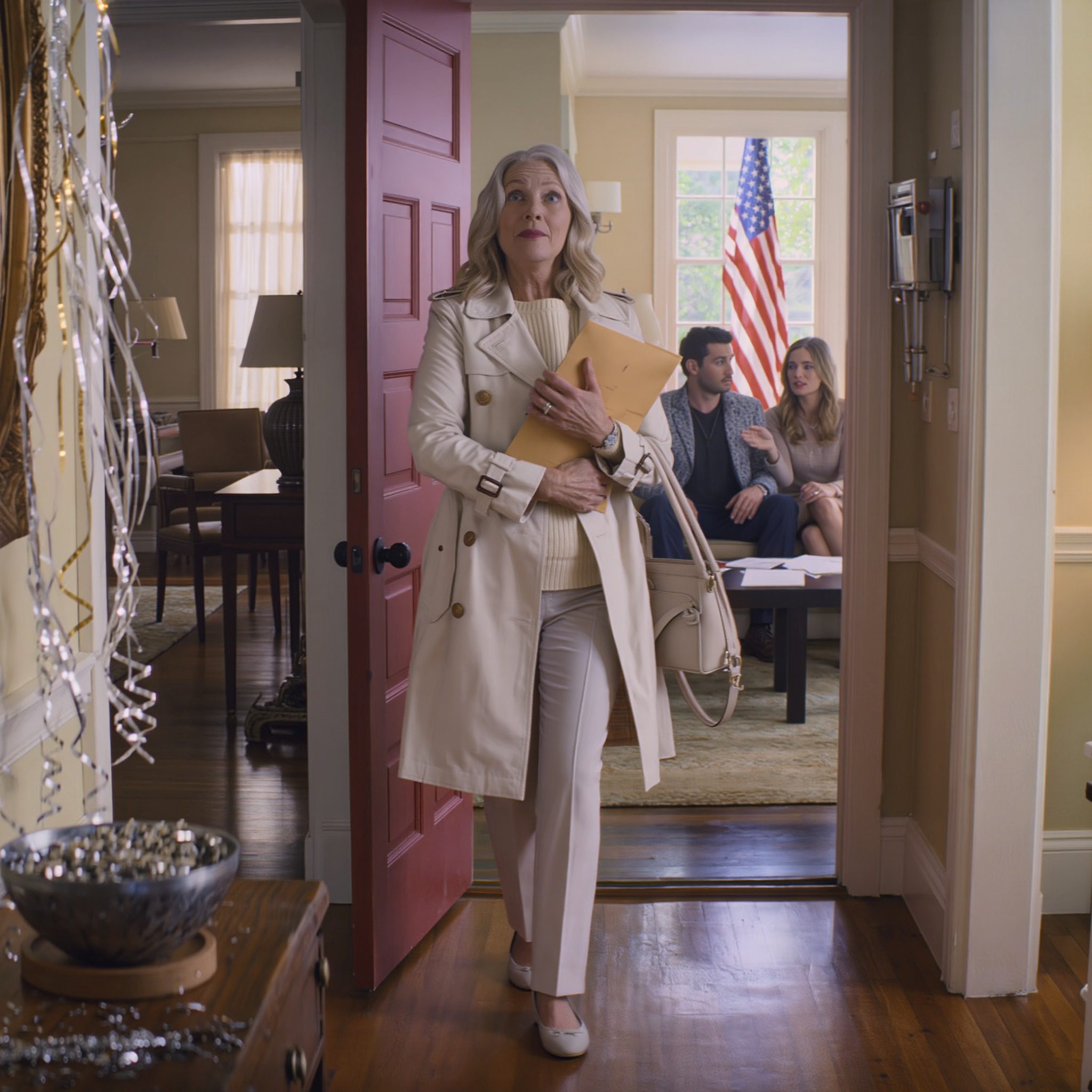 ‘Prima, zoon,’ antwoordde ik, terwijl ik de envelop in mijn handtas stopte voordat ze hem konden zien. ‘Gewoon wat verzekeringspapieren. Niets belangrijks.’
