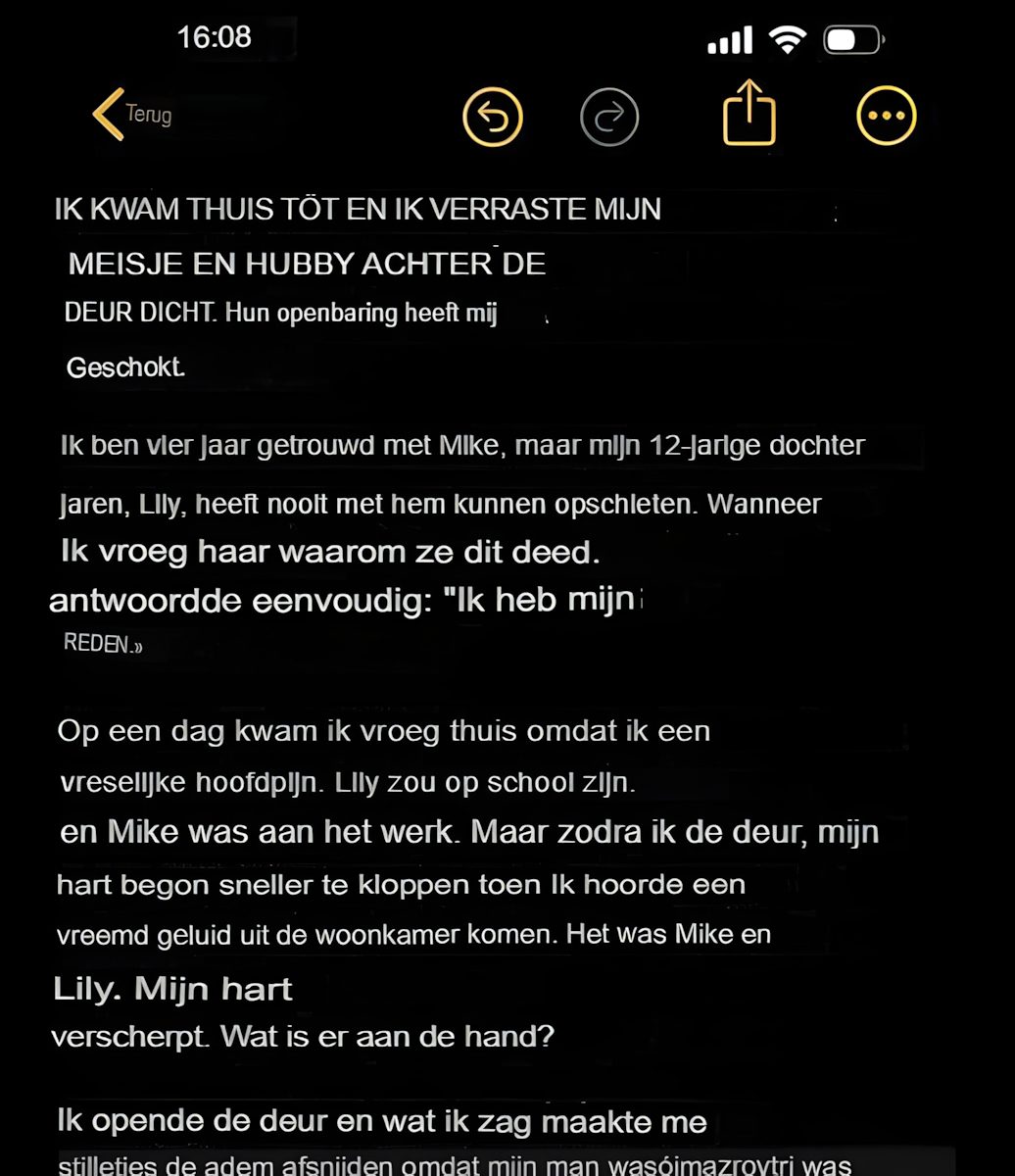 Ik kwam vroeg thuis en trof mijn dochter en man achter gesloten deuren aan. Wat ze onthulden, schokte me…