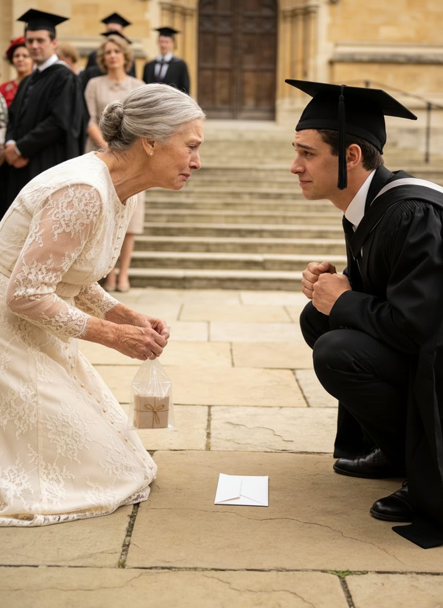 Ze stond achter in de aula van de universiteit, gekleed in een verbleekte jas en versleten sandalen. Haar haar was netjes naar achteren gebonden, zoals altijd na een lange dag kantoren schoonmaken en de was doen voor anderen. Ze glimlachte toen ze me zag, die stille, hoopvolle glimlach die me mijn hele jeugd had vergezeld.