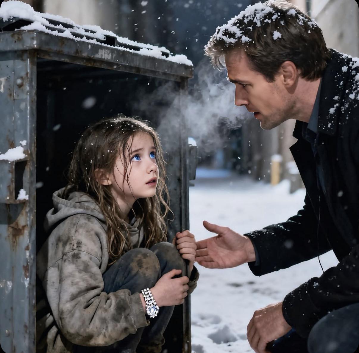 Ik vond een klein meisje verstopt in mijn vuilcontainer met een diamanten armband om haar pols — en toen besefte ik dat ze…