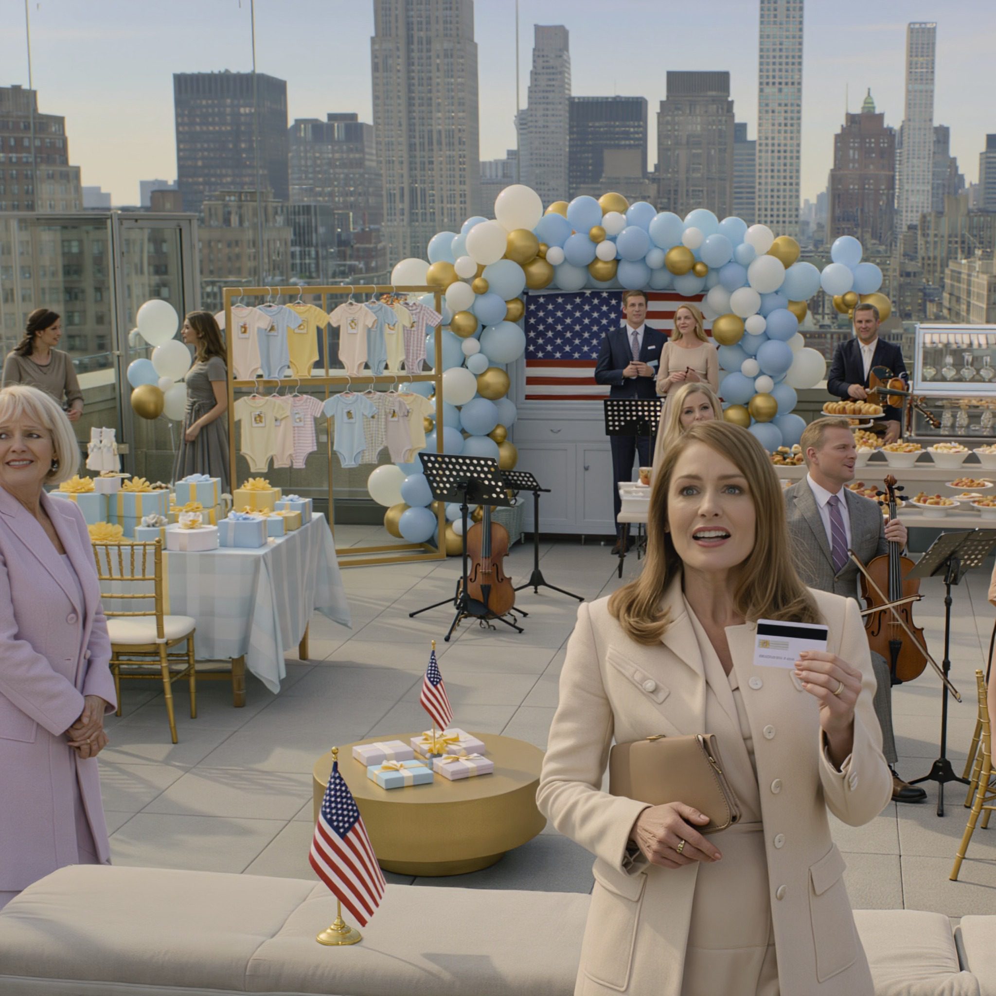En voor het eerst in hun leven moesten ze uitleggen hoe het kon dat een babyshower op het dakterras betaald was door iemand die ze niet eens hadden uitgenodigd.