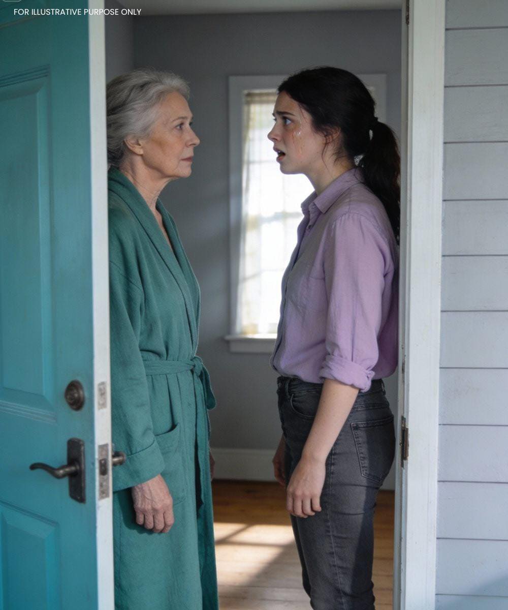 Ze zag er ontspannen uit, haar haar was nog nat, en ze hield een mok uit onze keuken vast. Ze glimlachte beleefd, alsof ik degene was die ons lastigviel.