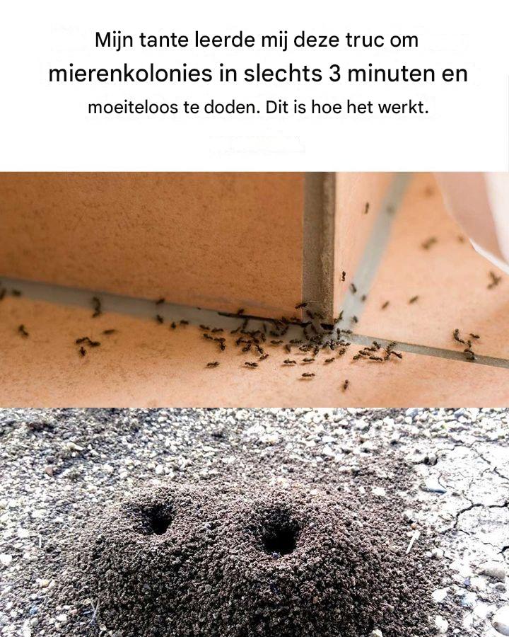 Totdat mijn tante mij een verrassend simpele truc vertelde waarmee ik in slechts 3 minuten een hele mierenkolonie kon elimineren, vrijwel zonder enige moeite. Bent u deze hardnekkige plagen zat? Dan is deze methode misschien wel de oplossing waar u naar op zoek was.