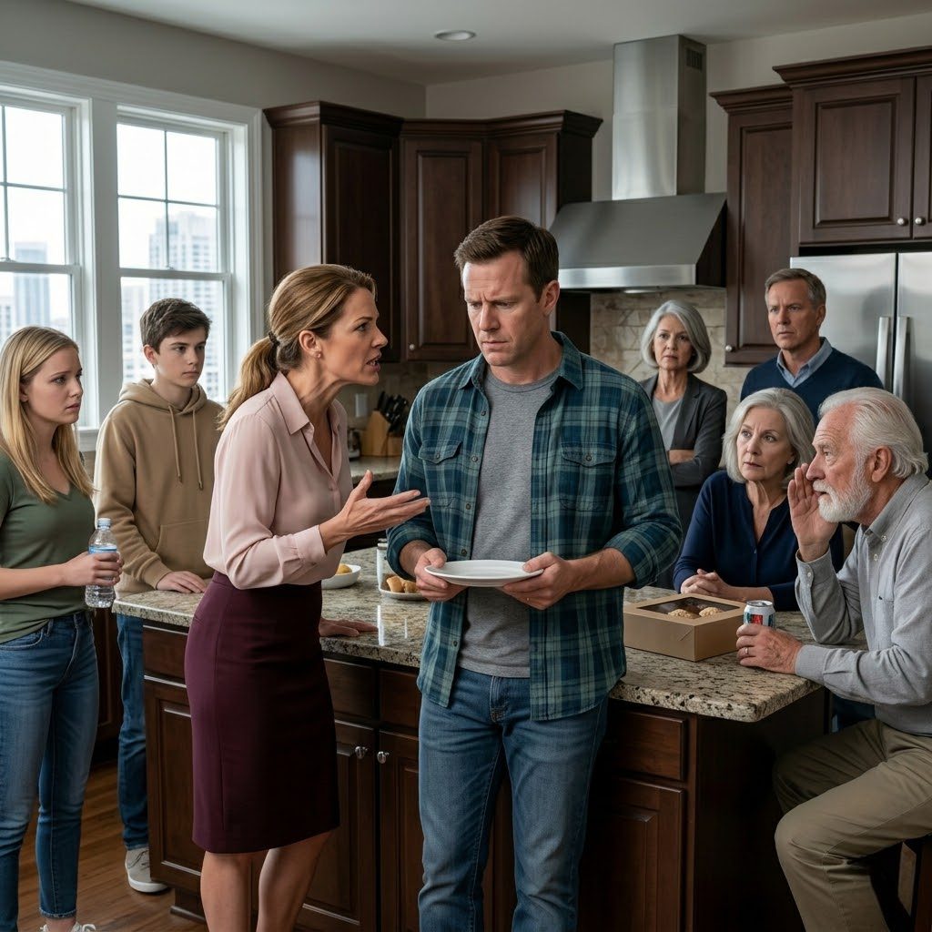 Zijn uitdrukking veranderde nauwelijks. Hij leek op een man die een simpele huisregel uitlegde, niet op iemand die net had geprobeerd zijn vrouw voor een ander tot een last te maken. Die kalmte was bijna erger dan de belediging zelf.