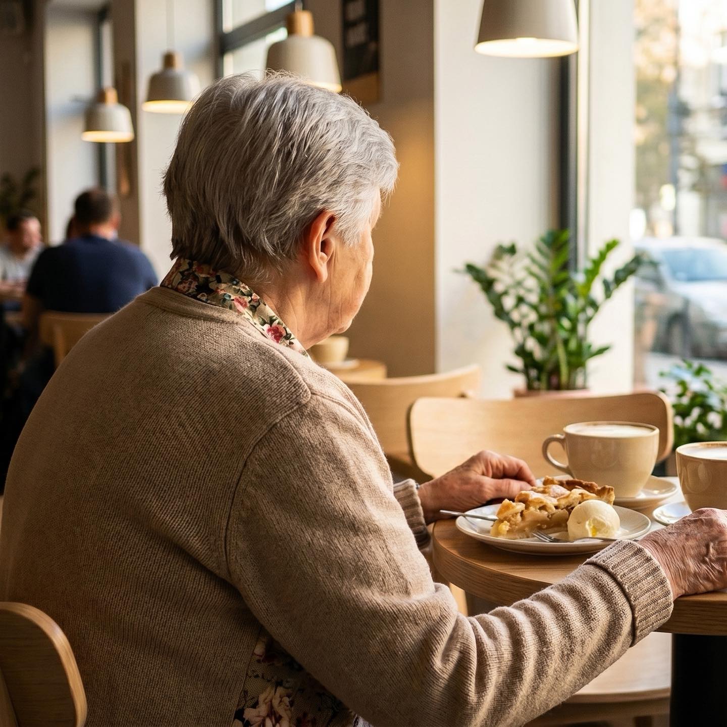 « Oma, ik wil je zaterdag meenemen voor een kopje koffie. Naar dat café in de Gdańska-straat, weet je wel, die met die warme appeltaart. »