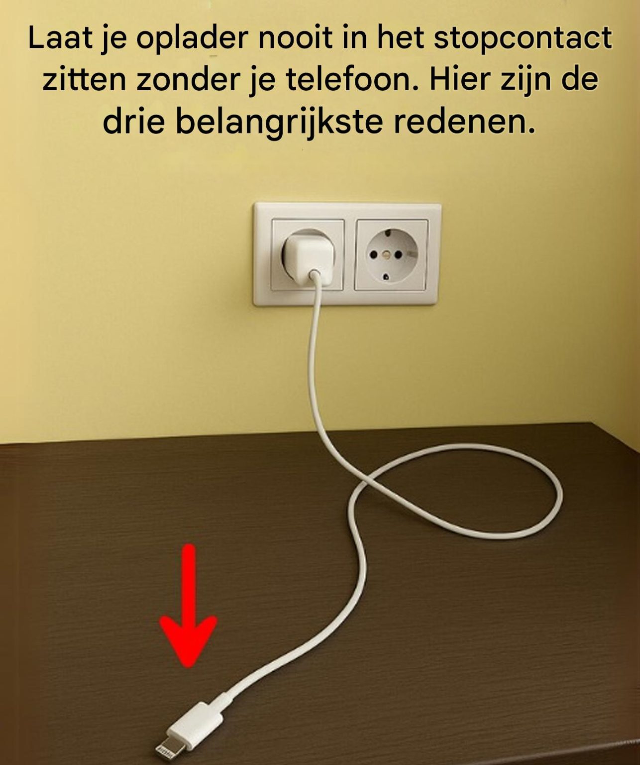 Een vaak onderschat gevaar: de oplader die in het stopcontact blijft zitten