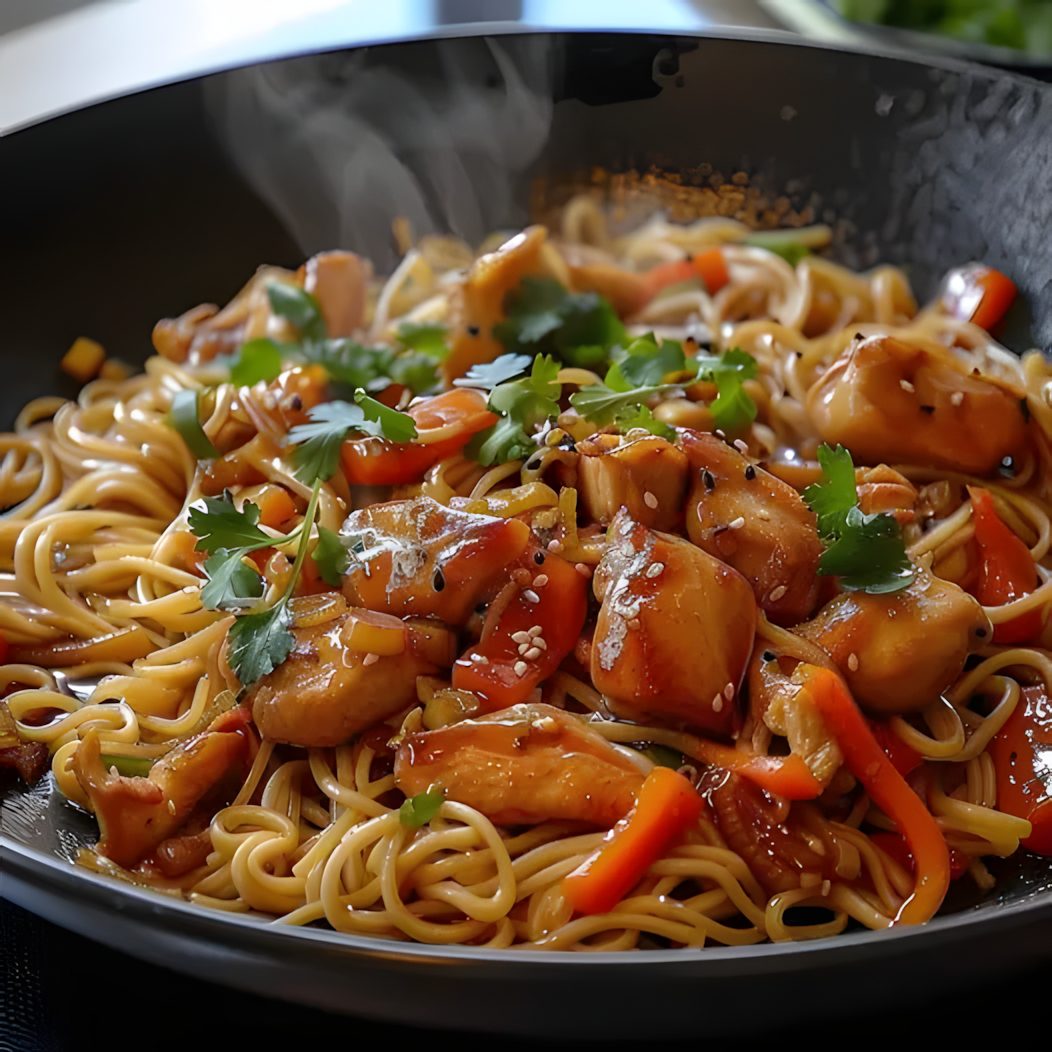 Deze snelle en smaakvolle Aziatische noedels combineren zachte, gekarameliseerde kip, knapperige groenten en een heerlijke zoet-zoute saus. Perfect voor een doordeweekse maaltijd of als comfortfood met een exotisch tintje! 😍