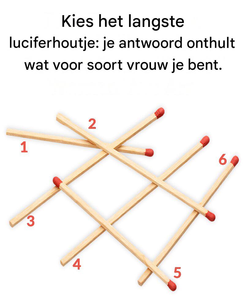 Op het eerste gezicht lijkt het een simpele visuele puzzel: zes verspreide en overlappende luciferstokjes, elk gemarkeerd met een nummer van 1 tot 6. De taak is eenvoudig: kies de langste.