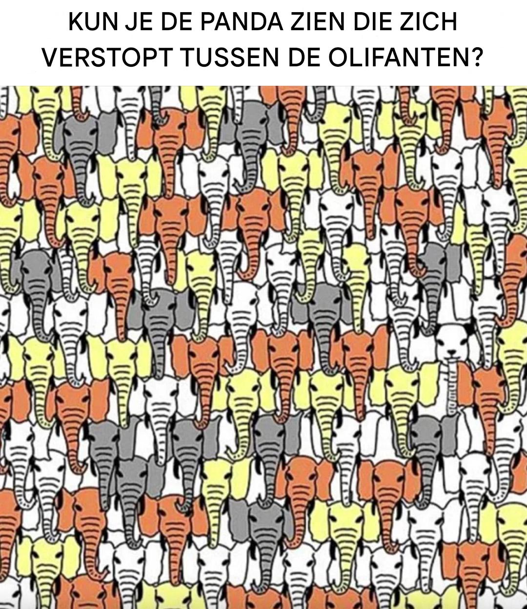Kun je de panda vinden die zich tussen de olifanten verstopt? Probeer deze virale puzzel!