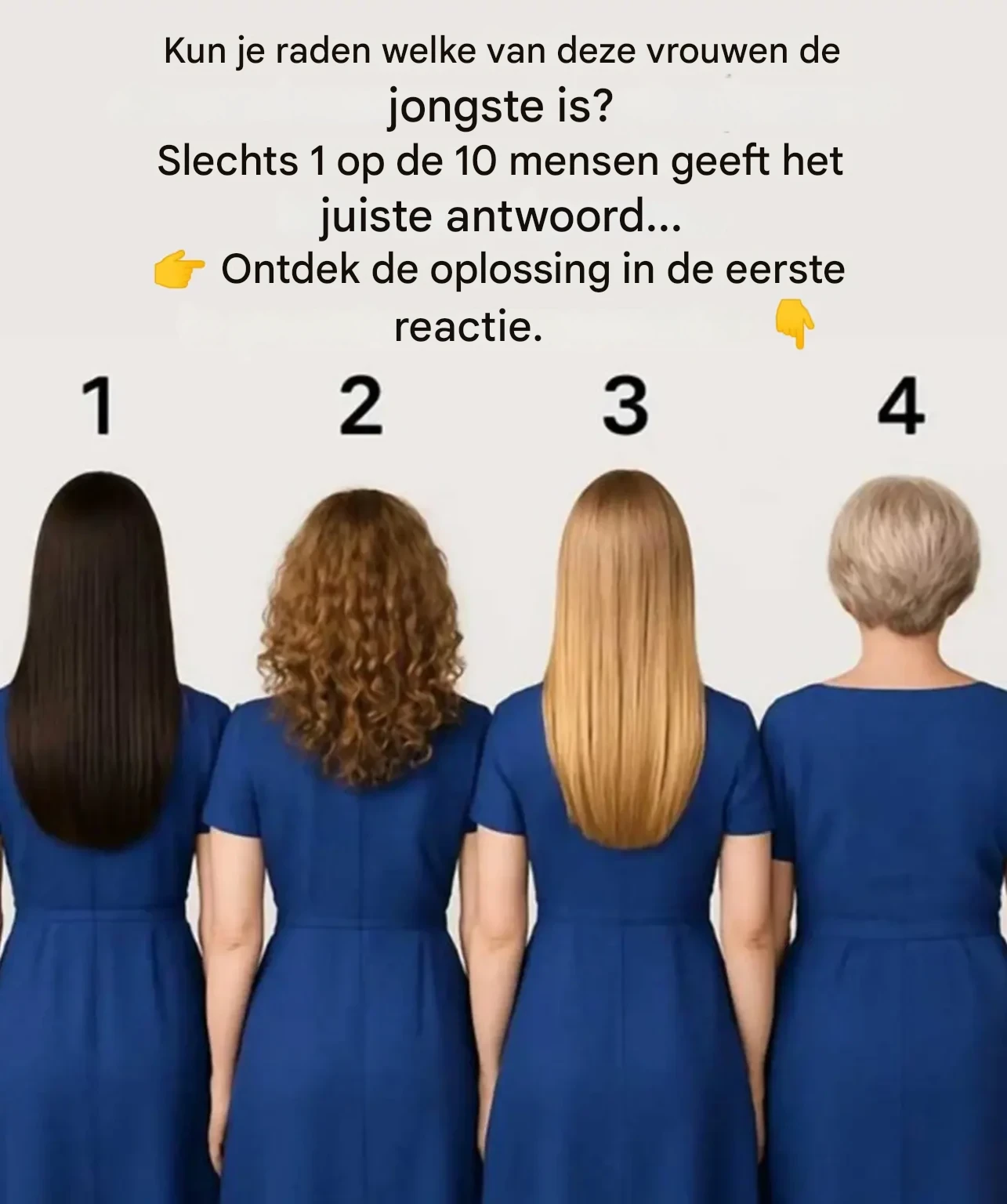 Vier vrouwen, vier silhouetten van achteren gezien, vier verschillende kapsels. Op het eerste gezicht lijkt de puzzel simpel: je zou hun leeftijd kunnen raden door alleen naar hun haar te kijken. Maar deze visuele test, die viraal is gegaan op sociale media, verbergt een veel subtielere valkuil.