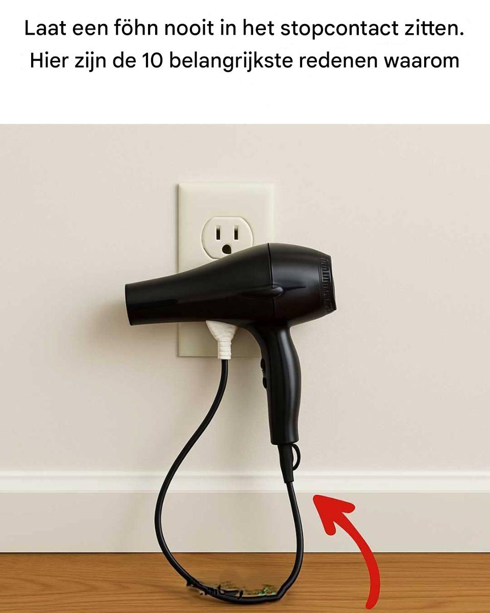 Laat een föhn nooit in het stopcontact zitten. Hier zijn de 10 belangrijkste redenen waarom