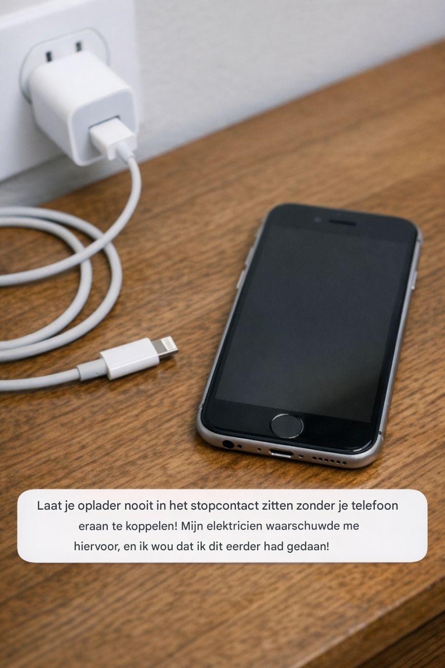 Laat je oplader nooit in het stopcontact zitten zonder je telefoon eraan te koppelen! Mijn elektricien waarschuwde me hiervoor, en ik wou dat ik dit eerder had gedaan!