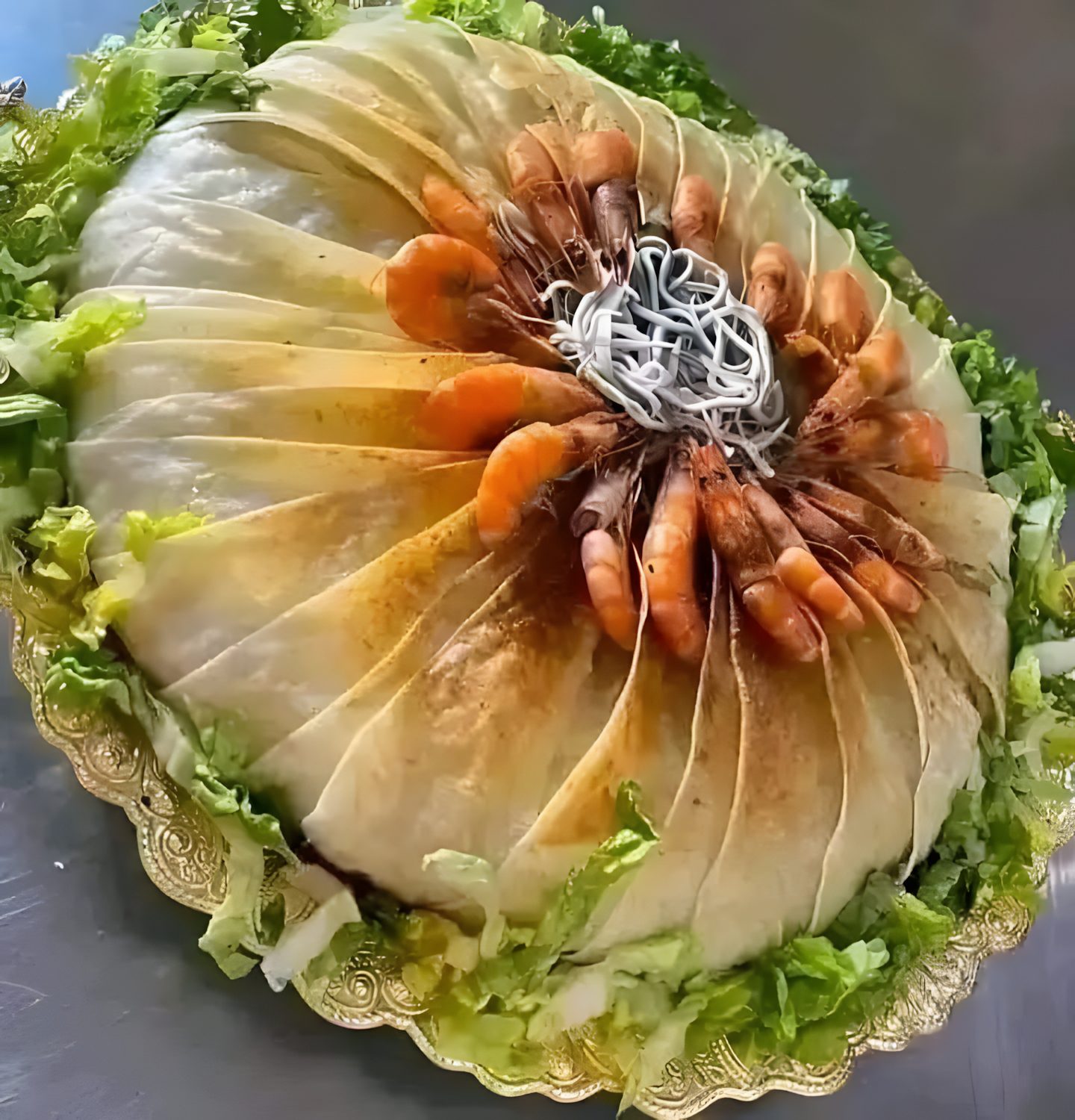Deze feestelijke zeevruchtenbastilla is een ware blikvanger op tafel! 🎉 Met zijn krokante filodeeg, romige en kruidige vulling van zeevruchten, en een verfijnde presentatie, is dit gerecht perfect voor speciale gelegenheden zoals bruiloften, Ramadan, Eid of een luxe familiediner.