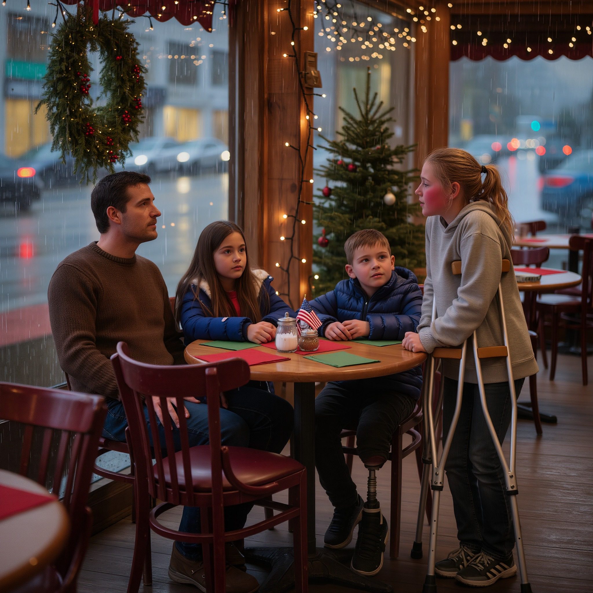 Het was een koude, regenachtige middag in een druk café, zo’n café waar mensen zich haasten, met druipende paraplu’s, terwijl ze zich uitschudden om warm te blijven. Niemand merkte het kleine meisje op dat net buiten de ingang stond, wankelend op een prothesebeen, haar krukken licht trillend terwijl ze om zich heen keek naar een plekje. Op haar gezicht stond een vermoeide vastberadenheid die kinderen niet zouden moeten dragen. Ze was amper twaalf, haar haar in een rommelige paardenstaart gebonden en haar kleren waren duidelijk versleten.