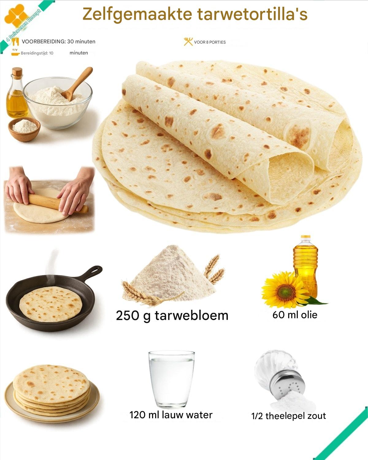 4 – Doe het deeg terug in de kom, dek af met een schone theedoek en laat het 30 minuten rusten op kamertemperatuur. Deze rusttijd maakt de tortilla’s makkelijker uit te rollen en zachter.