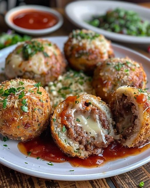 Deze met kaas gevulde gehaktbroodhapjes zijn een heerlijke variant op klassiek gehaktbrood, perfect als voorgerecht of als leuke optie voor het diner. Elke hap zit boordevol smaak en ooey-kleverige kaas! 😋 🧀🍖