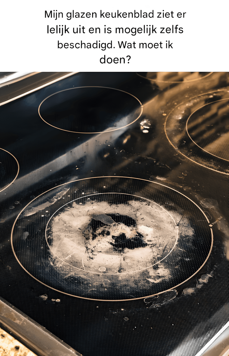 Mijn glazen keukenblad ziet er lelijk uit en is mogelijk zelfs beschadigd. Wat moet ik doen?