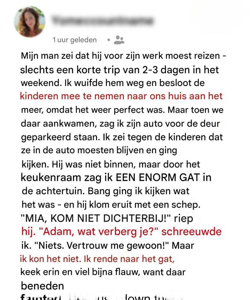 Binnen leek alles normaal, totdat ze een enorme kuil zag die in de achtertuin was gegraven.