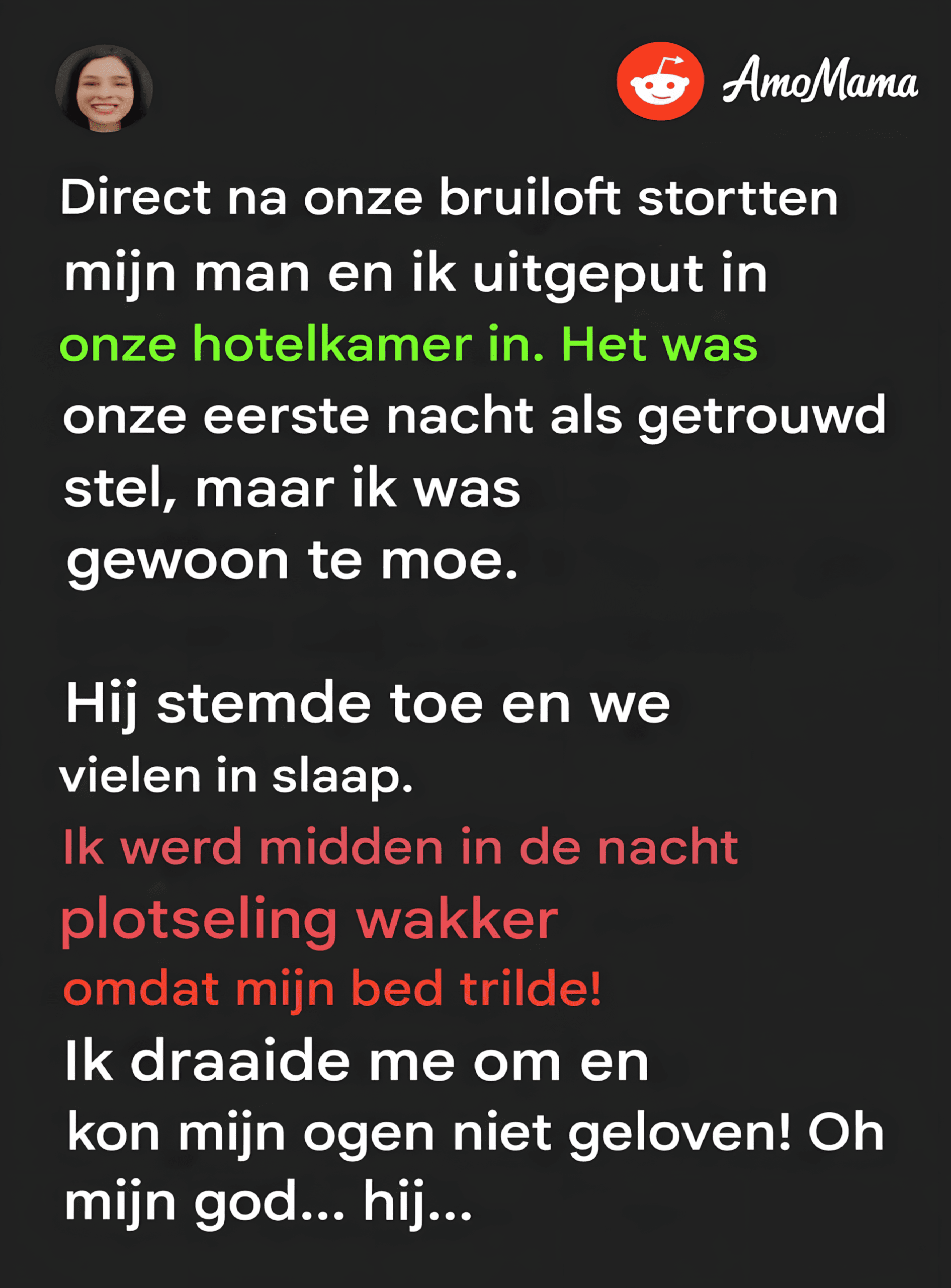Op onze huwelijksnacht wilde mijn man, Scott, passioneel met me zijn, maar ik weigerde omdat ik moe was. Hij stemde toe en kuste me welterusten. Plotseling, om middernacht, voelde ik het bed schudden en draaide ik me om, maar ik verstijfde terwijl ik Scott zag doen wat hij deed.