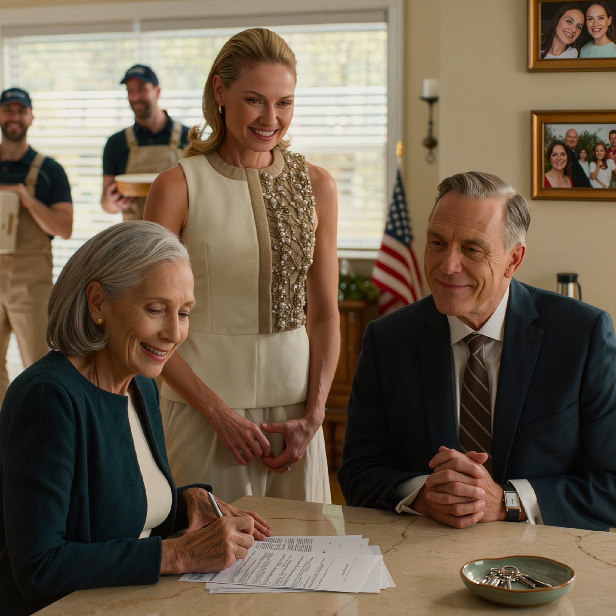 ‘Teken de papieren, Maggie,’ zei Robert, terwijl hij zijn stropdas losmaakte. ‘Laten we het je makkelijk maken. Je kunt je persoonlijke spullen meenemen. Ik voel me gul. Ik geef je zelfs 10.000 dollar om je op weg te helpen. Maar dit huis, dit leven, dit geld, het is nu van mij.’