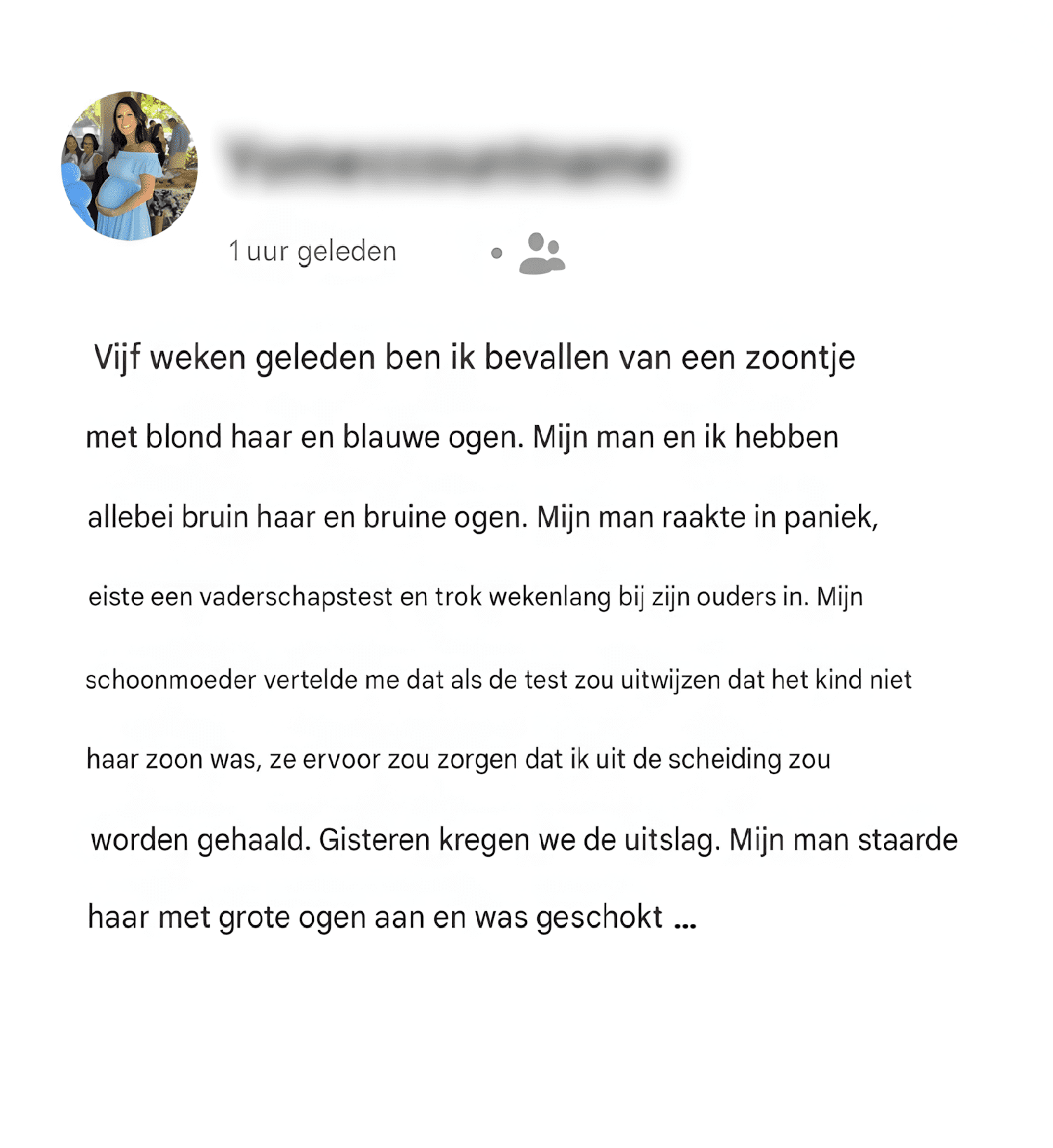 De dag voordat ze haar verhaal online deelde, ontvingen de OP en haar man de uitslag van de vaderschapstest.