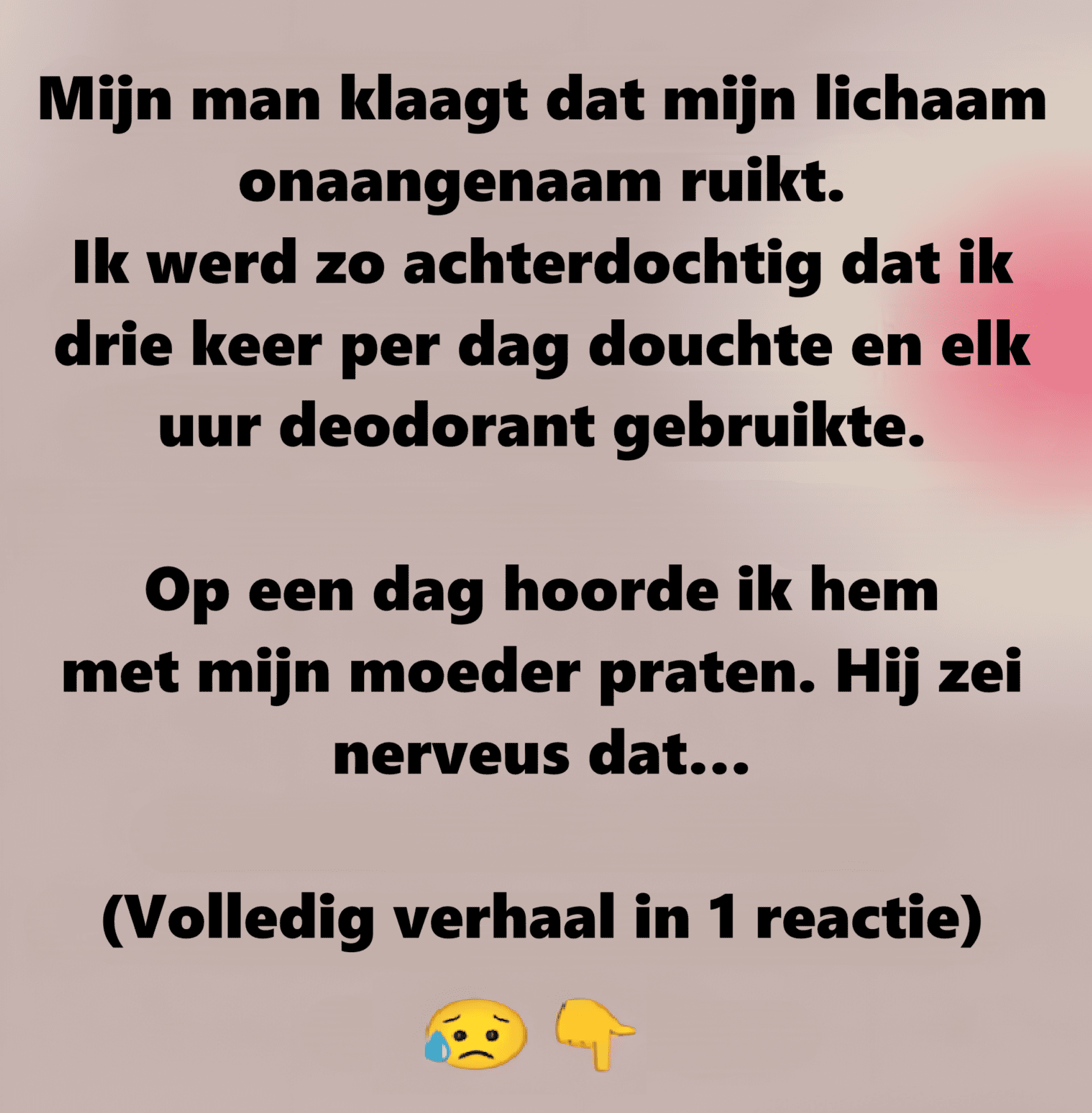 Ze schrijft: « Ik had het gevoel dat ik gek werd. Ik was er zeker van dat ik niet had geroken tijdens onze relatie. Destijds vond ik ook niet dat ik stonk, maar mijn man duidelijk wel. Ik controleerde altijd discreet mijn oksels. Ik ging naar de dokter, die bevestigde dat er medisch niets mis was. »