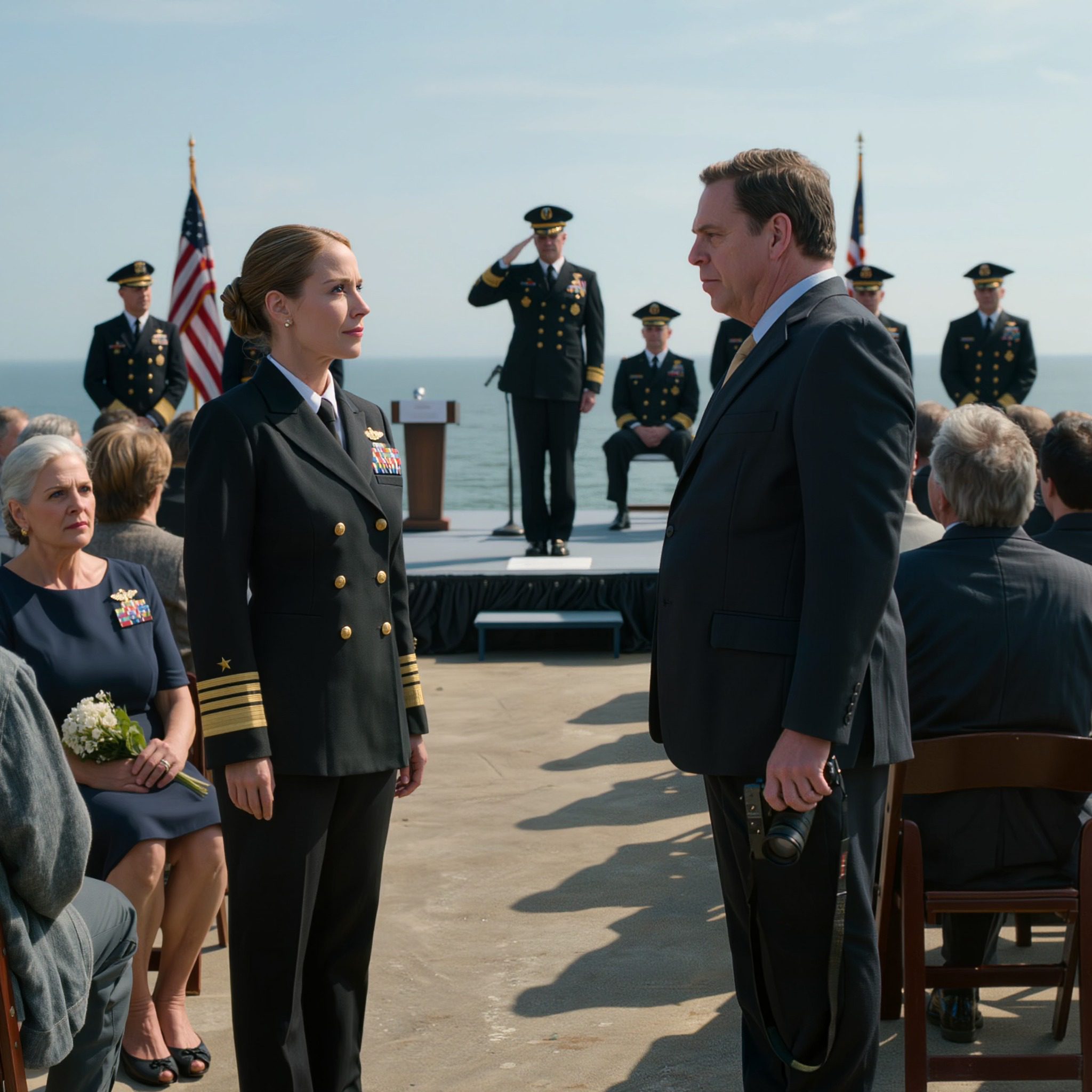 ‘Dames en heren,’ zei hij in de microfoon, ‘we hebben de bijzondere eer om schout-bij-nacht Pauline Grayson vandaag te mogen verwelkomen. Admiraal Grayson is commandant van de logistieke en operationele groep van de Pacific Fleet en heeft zich meer dan 25 jaar lang buitengewoon onderscheiden. Haar aanwezigheid hier is een eerbetoon aan deze mannen en aan deze ceremonie.’