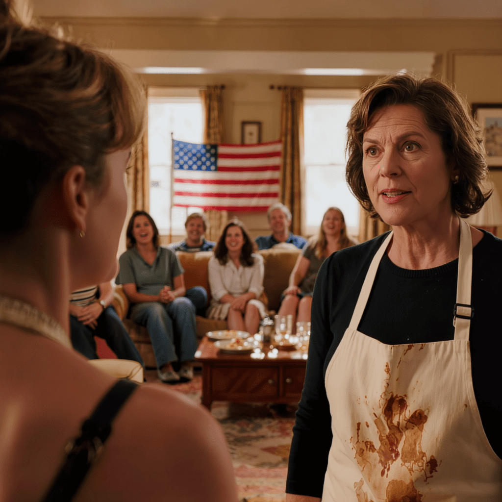 Toen mijn moeder lachend tegen een zaal vol mensen zei dat ik de enige in het gezin was zonder een echte baan, werd het stil in huis op die verfijnde South Park-manier waar niemand onderbrak, maar niemand ook durfde weg te kijken. Ik stond in de opening tussen de keuken en de eetkamer in een donkerblauw schort met strepen van bloem en olijfolie, met één hand op een schaal met rosbief en de andere nog nat van het afwassen van serveerlepels. Vijftig gasten vulden het huis van mijn ouders, van de ontbijthoek tot het terras achter het huis, waar de lichtslingers al brandden in de zachte schemering van Charlotte. Mijn zus Madison stond bij de open haard in een crèmekleurige zijden jurk, met een te stralende glimlach. Aan de andere kant van de kamer keek een man die ik kende van een tiental videogesprekken – Christopher Hayes, CEO van Meridian – me aan met een stilte die mijn hart sneller deed kloppen. Mijn moeder nam een ​​slok witte wijn en glimlachte alsof ze iets liefs had gezegd. Ik zette de schaal neer. Toen greep ik achter mijn nek naar de touwtjes van mijn schort.