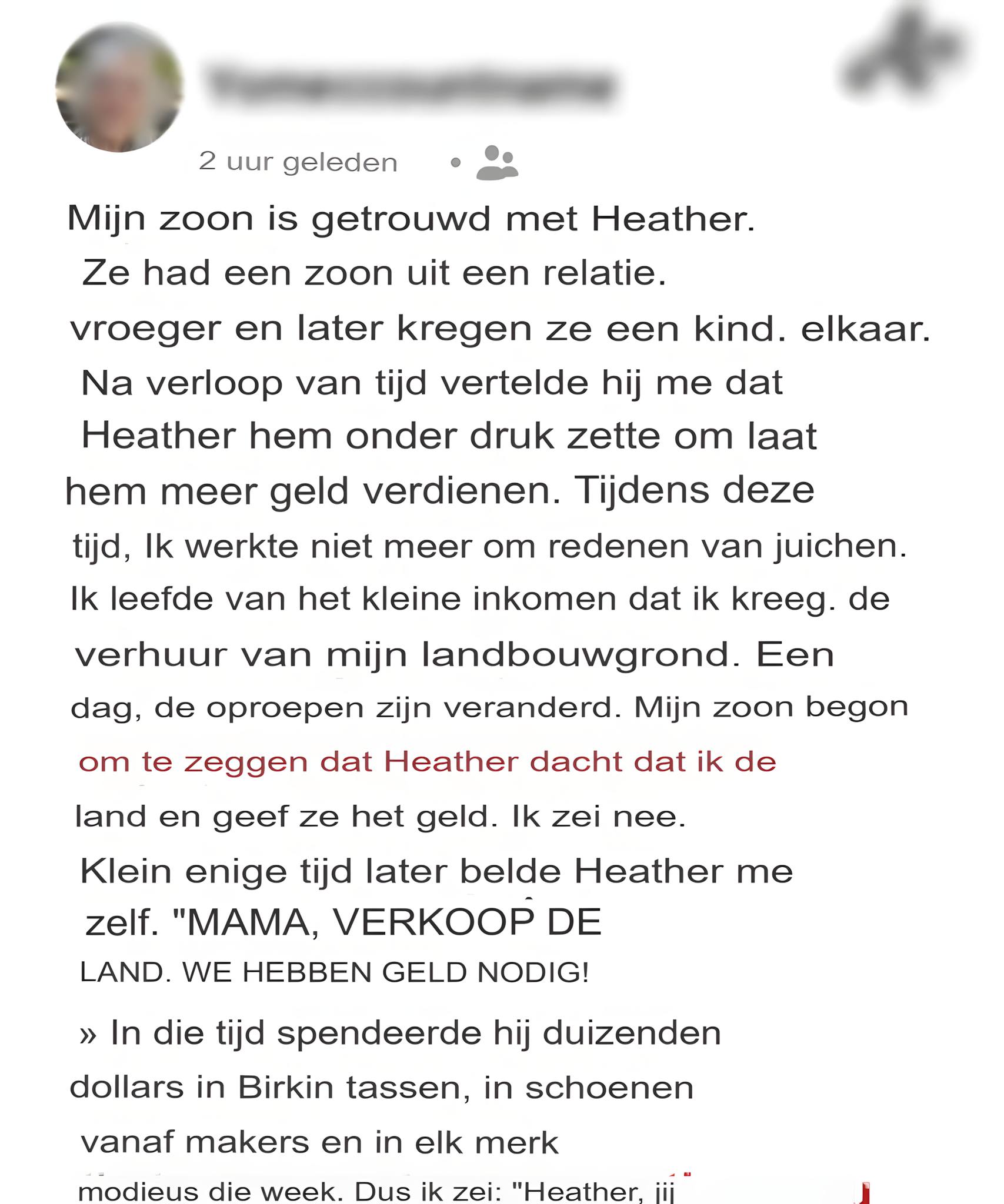 Mijn schoondochter vroeg me mijn land te verkopen om haar luxe levensstijl te financieren. Ik had er eindelijk genoeg van en leerde haar een lesje dat ze nooit zal vergeten.