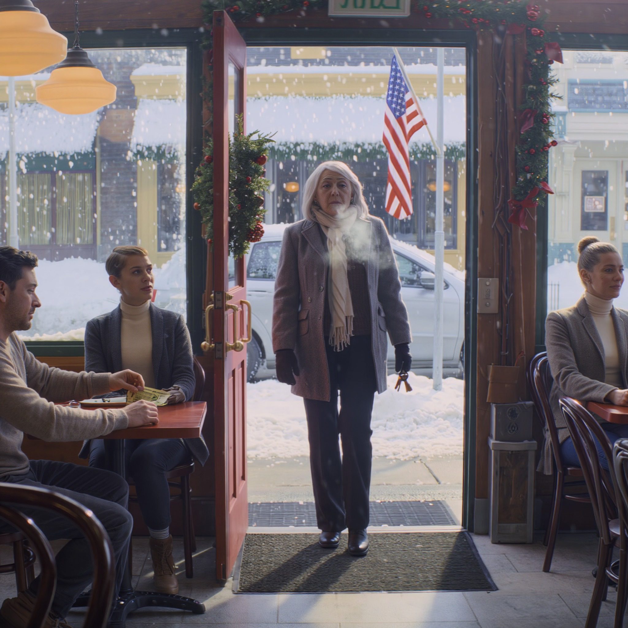Fern and Hearth zag er precies zo uit als altijd op de zondag voor Kerstmis: druk genoeg, gezellig op een zorgvuldige manier. Rode bakstenen muren versierd met gedroogde kransen, kleine lichtslingers die zwakjes gloeiden, meer decoratief dan sfeervol. De stoelen waren nog steeds bekleed met dat zachte crèmekleurige leer, een beetje versleten, maar altijd schoon.