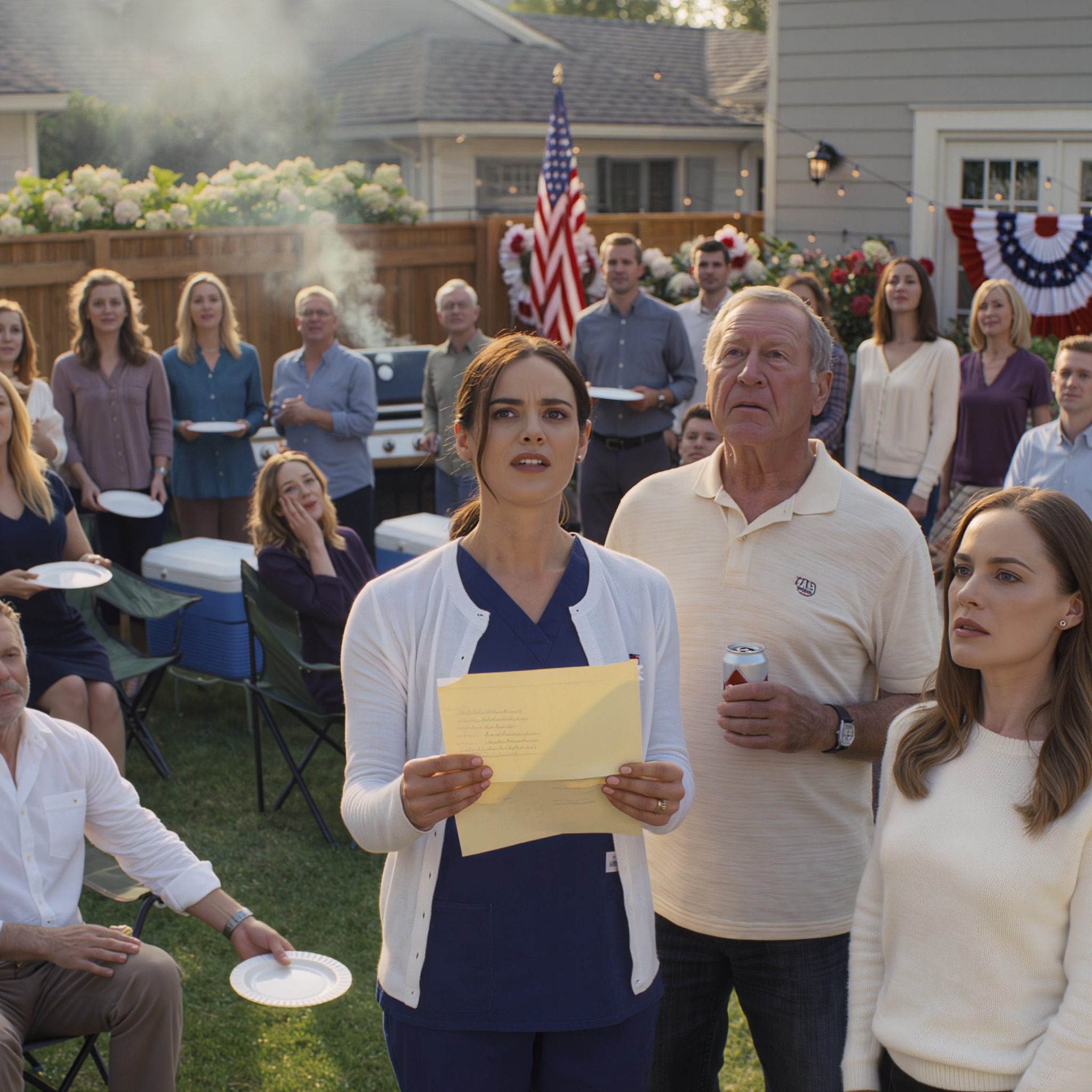 Zijn hand begon te trillen. Die brief bevatte iets wat hij dertig jaar lang verborgen had gehouden. En toen het naar buiten kwam, verpestte het niet alleen zijn Vierde Juli. Het ontrafelde elke leugen die hij ooit had verteld over mijn moeder, over mij en over wiens naam er nu eigenlijk op de eigendomsakte stond van het huis dat hij het zijne noemde.