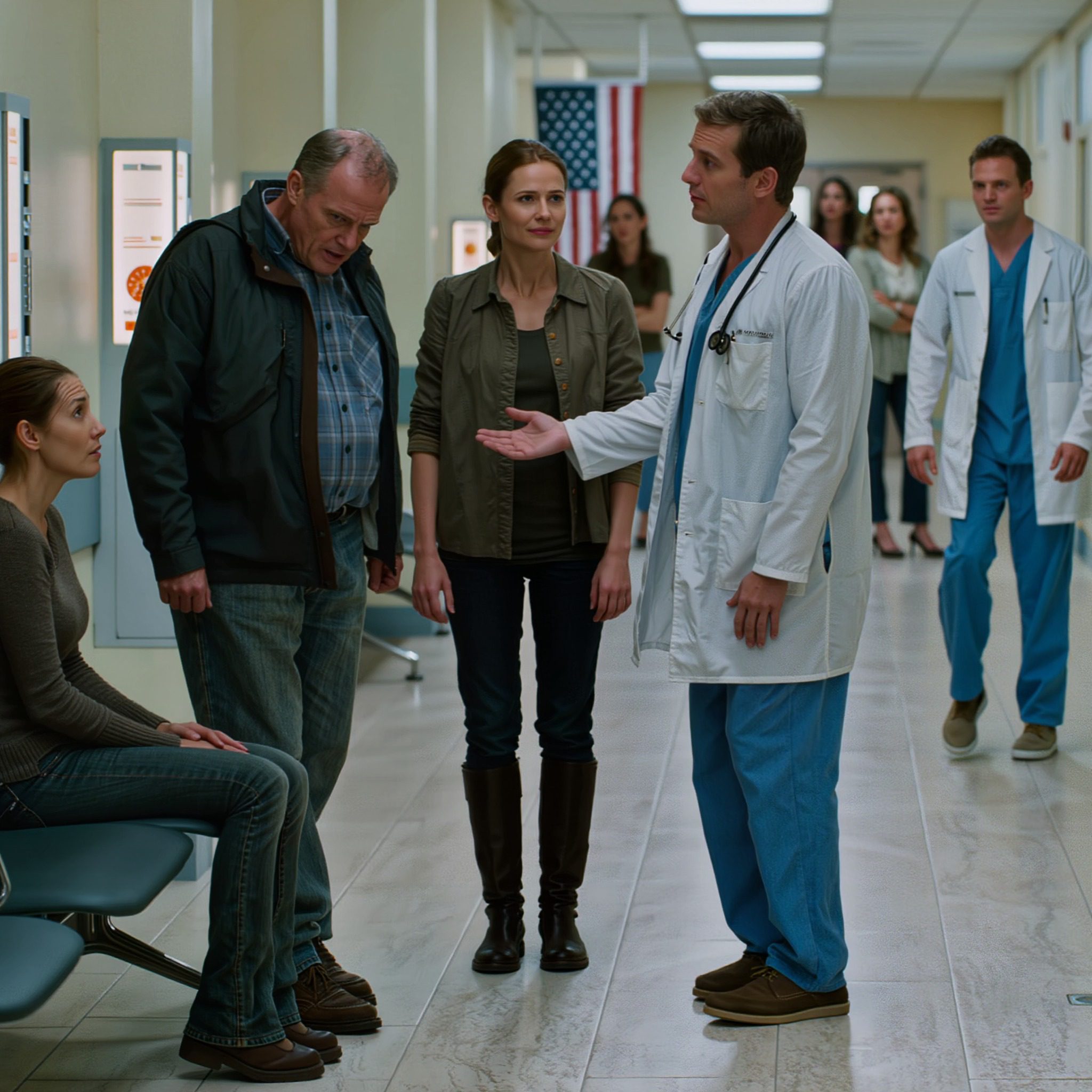 De dokter – Dr. Hayes – liep met beheerste passen naar ons toe, zijn professionele masker stevig op zijn plaats. Maar ik zag iets veranderen achter zijn ogen. Hij was misschien begin dertig, met vriendelijke gelaatstrekken die nu een hardheid vertoonden die ik herkende als ingehouden woede.