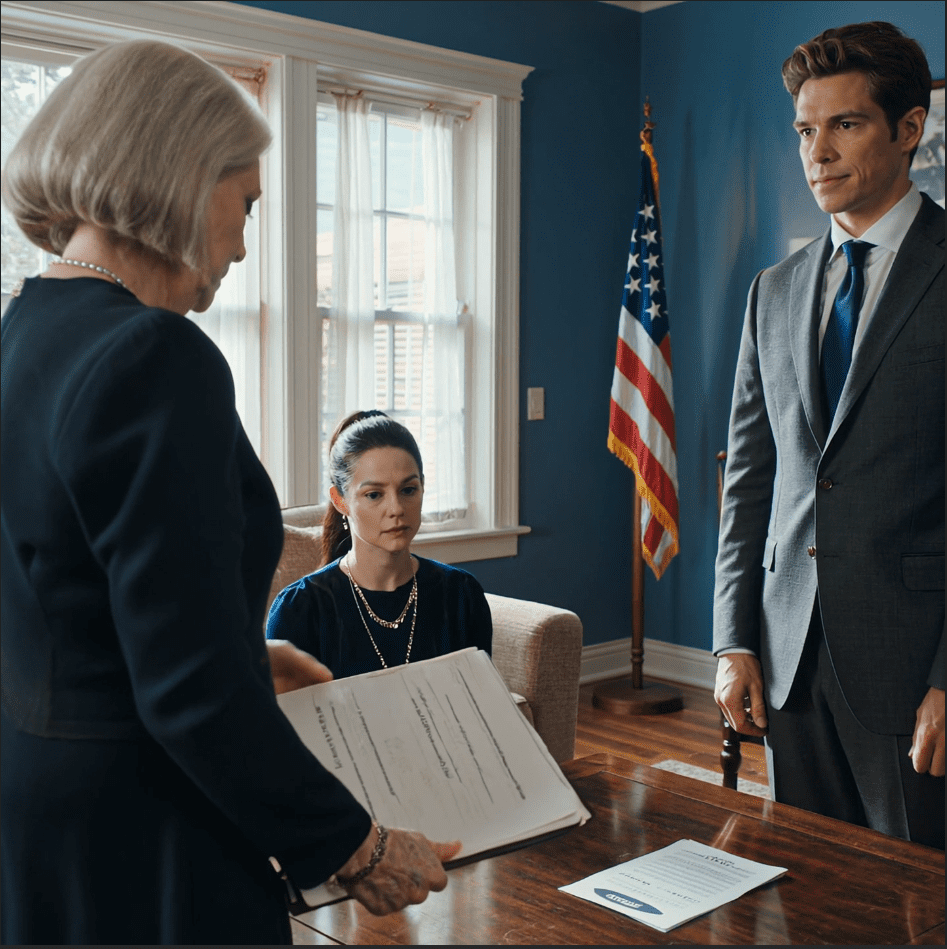 ‘Mam, jij hebt vorig jaar de overdrachtsdocumenten getekend. Het huis staat nu op mijn naam. Jij hebt het me gegeven. Weet je nog? Je zei dat je wilde dat ik het vroeg zou hebben, zodat er later geen problemen zouden ontstaan.’
